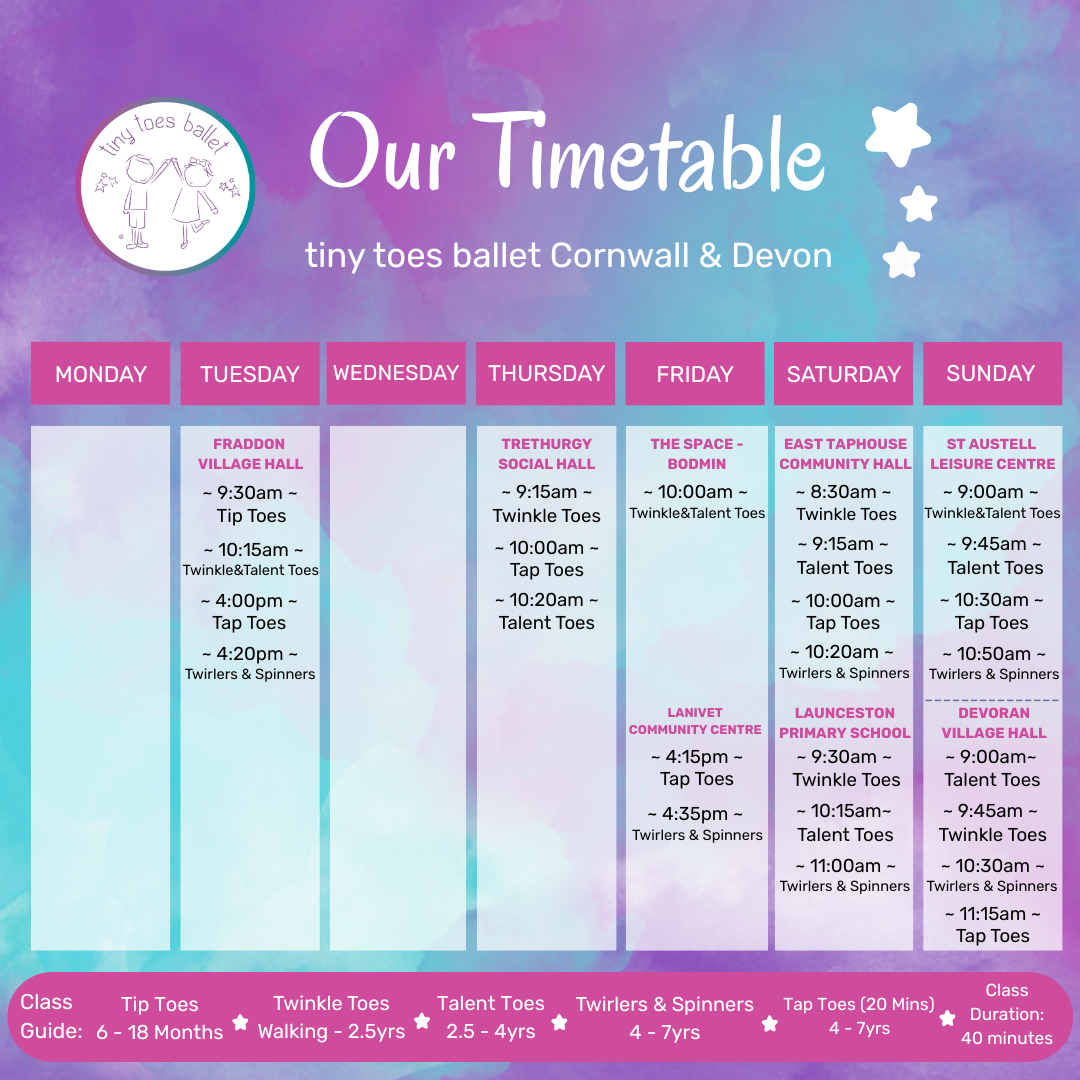 Tiny Toes Ballet Cornwall & Devon offers award-winning ballet and dance classes for young children aged 6 months to 7 years. Our fun and nurturing sessions help little ones grow in confidence, coordination, balance and creativity.